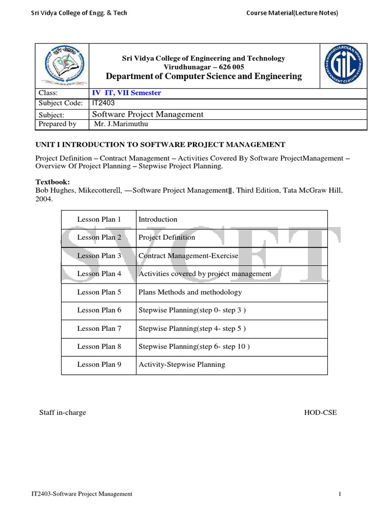 Software Project Management - SPM Study Materials | PDF FREE DOWNLOAD